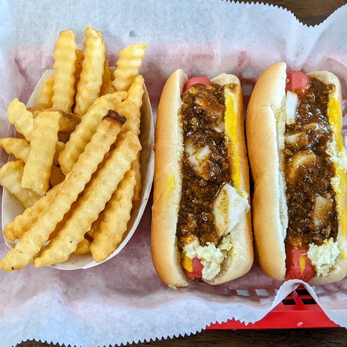 One of the best burgers I’ve ever had. I got 2 burgers, 2 fries, 2 drinks and a slice of pie for under $20! Service was friendly and knowledgeable about the menu. I would recommend a big Jim with cheese, slaw, chili, ketchup, mustard, and grilled onions. Great experience. I’ll be sure to stop by next time I’m in town.